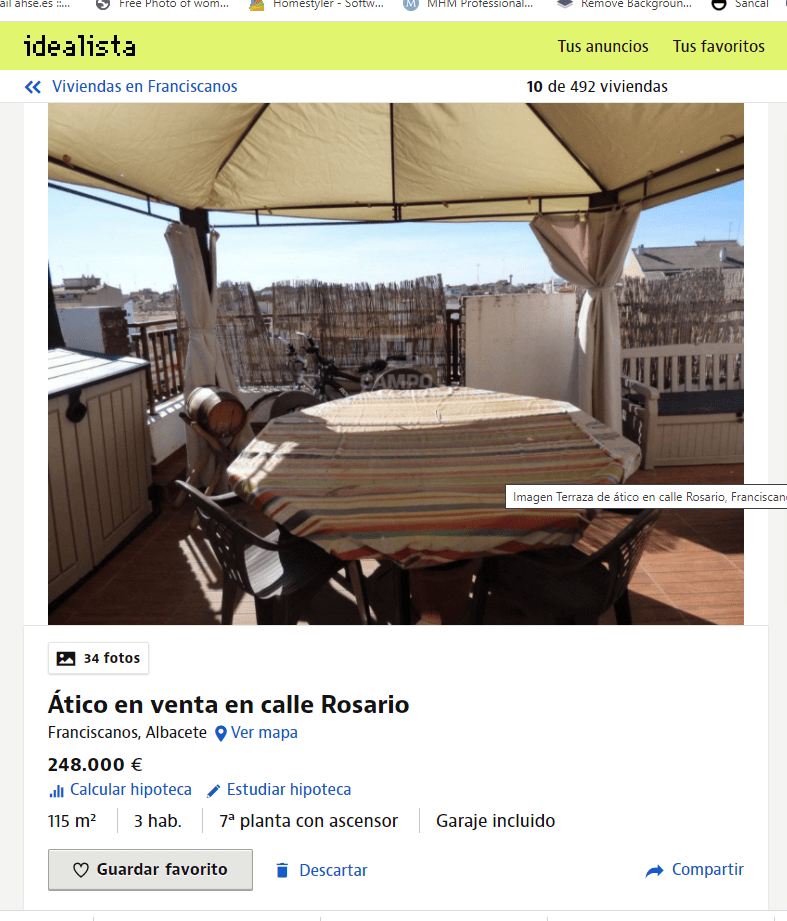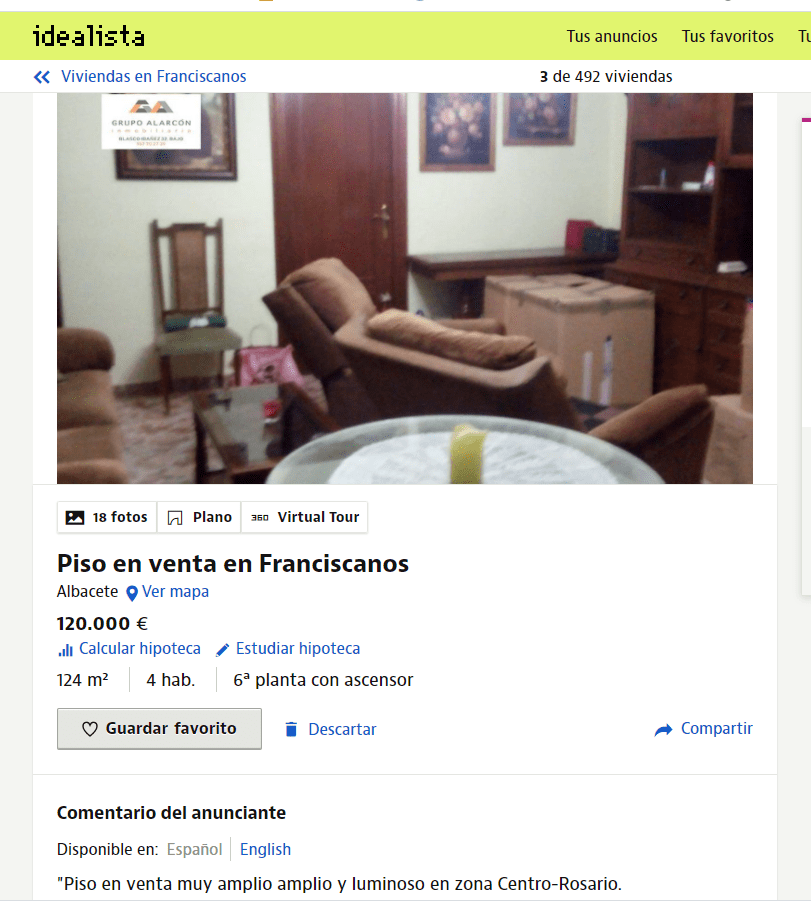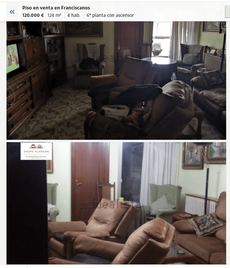 Entras en….., pongamos Idealista, seleccionas la zona, el rango de precio, el número de habitaciones, le das a buscar y… comienzan a salir anuncios de vivienda en venta y…te encuentras con esto.